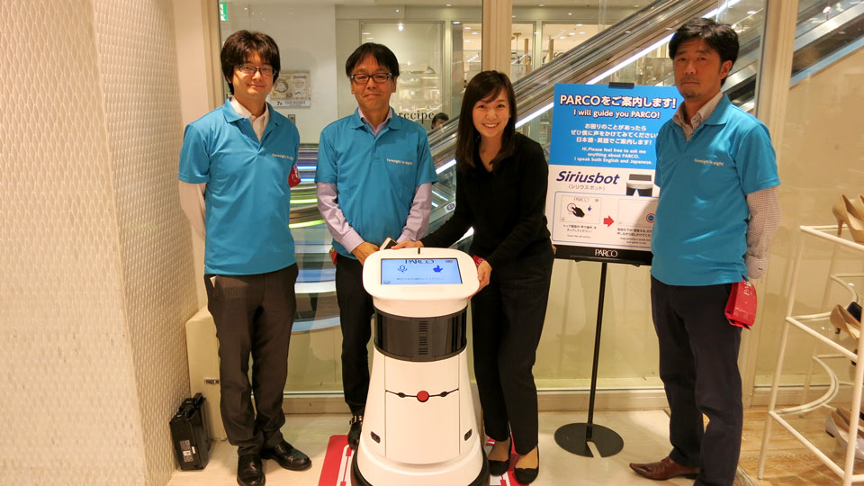 08ワークス株式会社、日本ユニシス株式会社、株式会社パルコの3社が共同で、都産技研とタッグを組み研究開発を進めている「商業施設案内ロボット」。株式会社パルコが運営するショッピングモールへの導入を視野に入れ、「昼は商業施設の案内・誘導」「夜は在庫管理」の1台で2役をこなす機能的ロボットを開発しました。超高齢化・少子化が進む現代社会において人手不足は深刻な社会問題になりつつあります。そんな中、ロボットを活用することで、人手不足を解消し、日本が誇るおもてなし・高いサービス力を維持しようと立ち上がったのが当プロジェクト。未来の日本社会を支える技術として、これから活躍が期待されるロボットです。