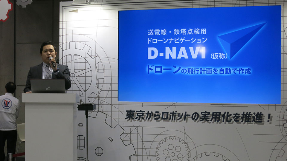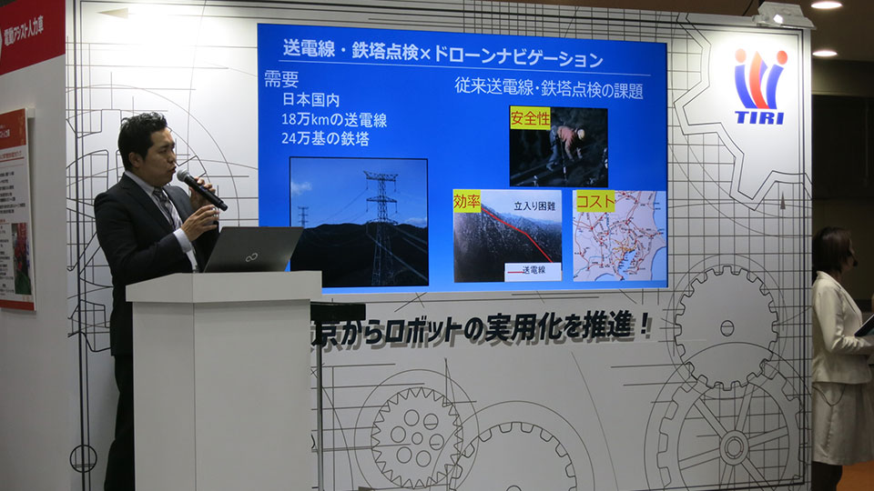 ドローンを使ったサービスを提供するブルーイノベーション株式会社は、都産技研と協力して送電線・鉄塔を点検するドローンナビゲーションシステムの研究開発を行っています。従来、送電線・鉄塔の点検は、ヘリを使った点検や、高倍率ビデオでの撮影、人が送電線に上り目視で点検を行っていました。そのため、「感電や墜落事故の危険」「山間部(立ち入り禁止区域)での点検」「送電停止の手続き」「年間の膨大な点検コスト」「老朽化による点検増加」など問題が山積。そこで、「安全」「効率化」「コスト削減」を目的としたドローンを用いた送電線・鉄塔点検を実現するために、送電線・鉄塔点検用ドローンナビゲーションシステムの開発が行われることになりました。人々の生活を支える送電線・鉄塔などの電力施設。この電力施設の維持に欠かせない点検を画期的なものにするシステムの構築に期待が集まっています。