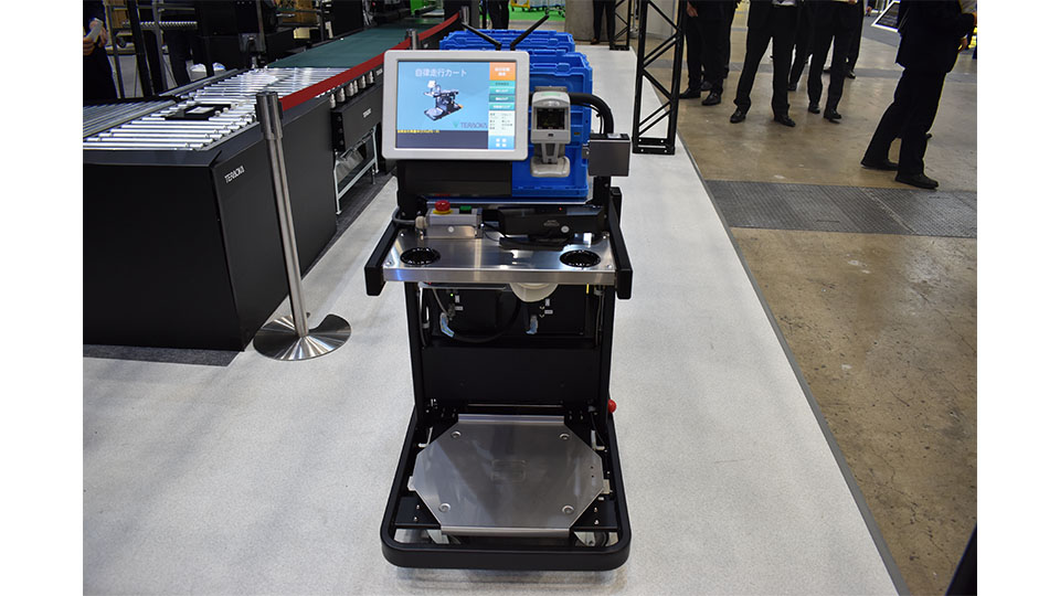 ピッキング指示を受信したカートが無人で商品棚の前まで移動。