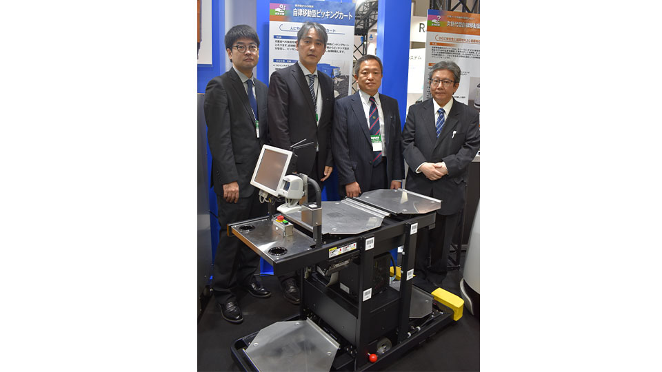 倉庫内でのピッキング作業は女性の方が多く、最大で120キロにもなるオリコンを積んで運びます。この重労働から解放するために誕生したのが自律走行式ピッキングカートです。自走式カートが最短経路を作成、ロケーションへの案内もカートが行うことを研究開発のテーマとし、初心者でも使いやすく安心して利用できるロボットへ進化しました。