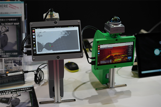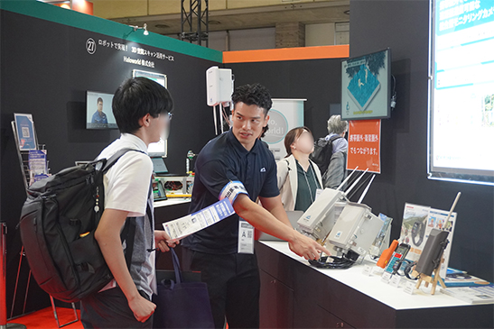 「ロボットで実現!3D空間スキャン活用サービス」は、今回更に小型化されたハンディタイプの「新Walk THERE」の動作デモを実施し、3Dスキャンロボットを活用した様々な用途を提案。ご来場された方や、研究者の方々での意見交換が活発に行われていました。