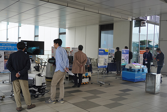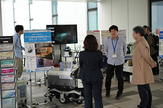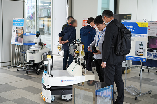 都産技研からは、「中小企業の5G・IoT・ロボット普及促進事業」の成果ロボット4種と、「ロボット産業活性化事業」の成果ロボット3種を展示・実演しました。
