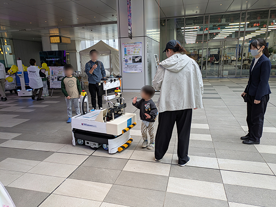 今年の出展場所はZone CとDの間、2階中央の広場。そこでは、つくばチャレンジ2025に挑戦中の運搬ロボット「MiniTaurus」が走行しており、たくさんの子供たちに楽しんでいただけました。