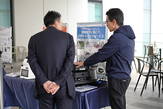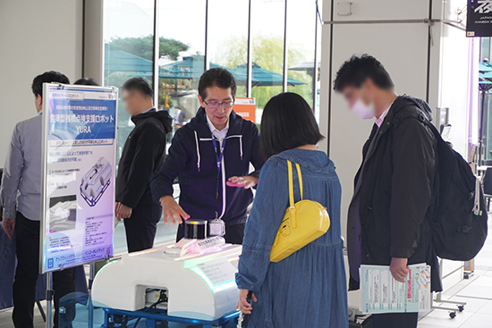 初日の羽田周辺は曇りで、あいにくの天気となりましたが、イベントに参加された来場者が都産技研ブースに足を止め、ロボットの説明に興味深く耳を傾ける姿が見られました。